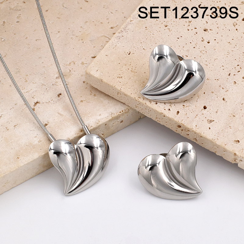 Level A Stainless Steel New Trendy Women Jewelry Heart Steel color Valentine's Day SET
