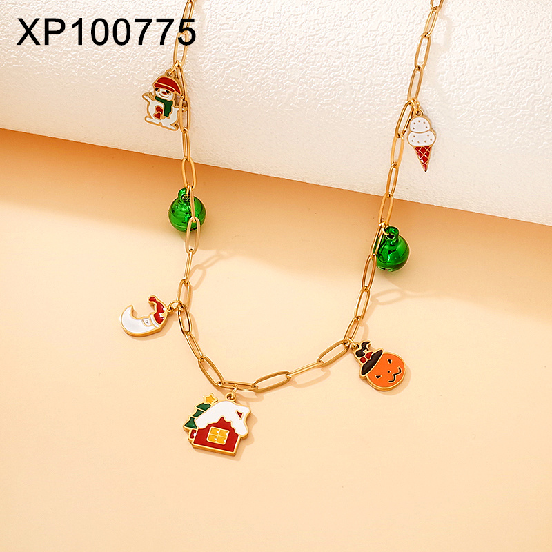 Home > Holiday Jewelry > Holiday Jewelry > Level B Stainless Steel New Trendy Women Jewelry Drip Oil/Enamel Christmas Golden Pendant