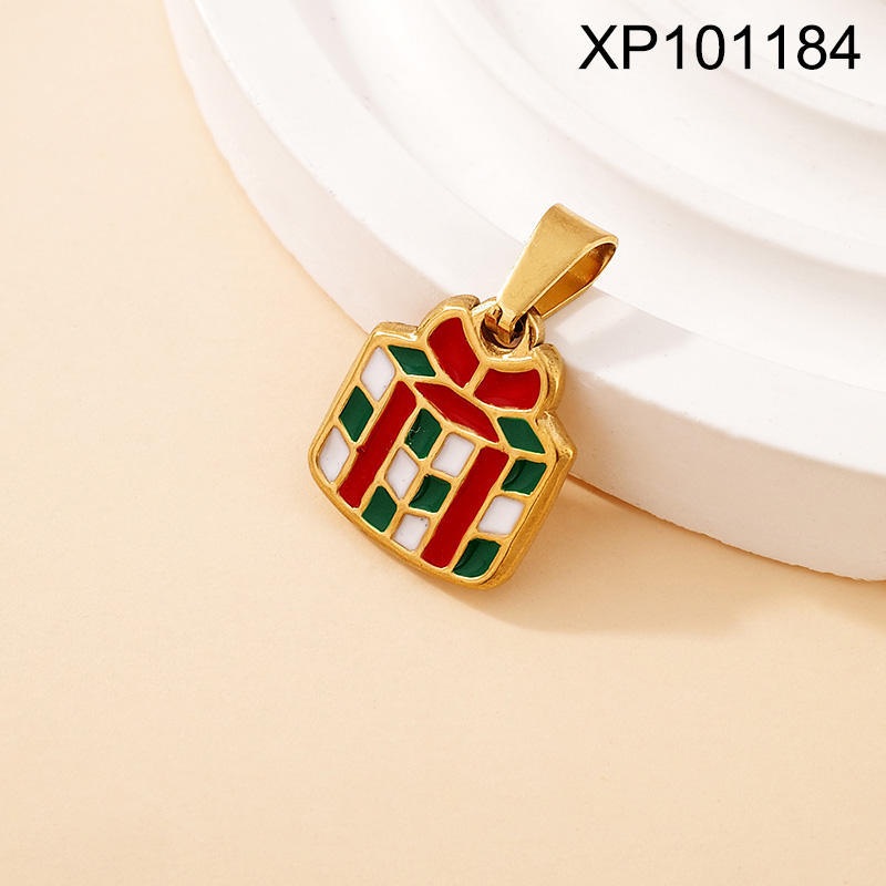 Home > Holiday Jewelry > Holiday Jewelry > Level B Stainless Steel New Trendy Women Jewelry Drip Oil/Enamel Christmas Golden Pendant