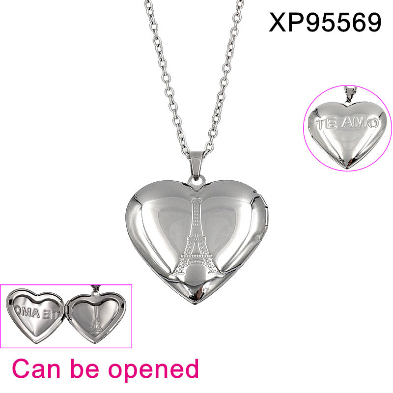 Home > Holiday Jewelry > Holiday Jewelry > Level B Stainless Steel Jewelry New Trendy Carved Heart Openable Photo Frame Steel color Valentine's Day Pendant