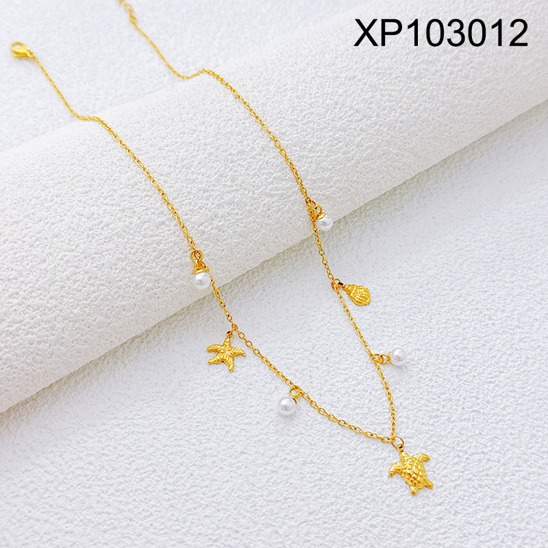 Level B Stainless Steel New Trendy Women Jewelry Pearl Style/Plastic Beads Summer beach Animal Turtle Starfish Shell Golden Pendant