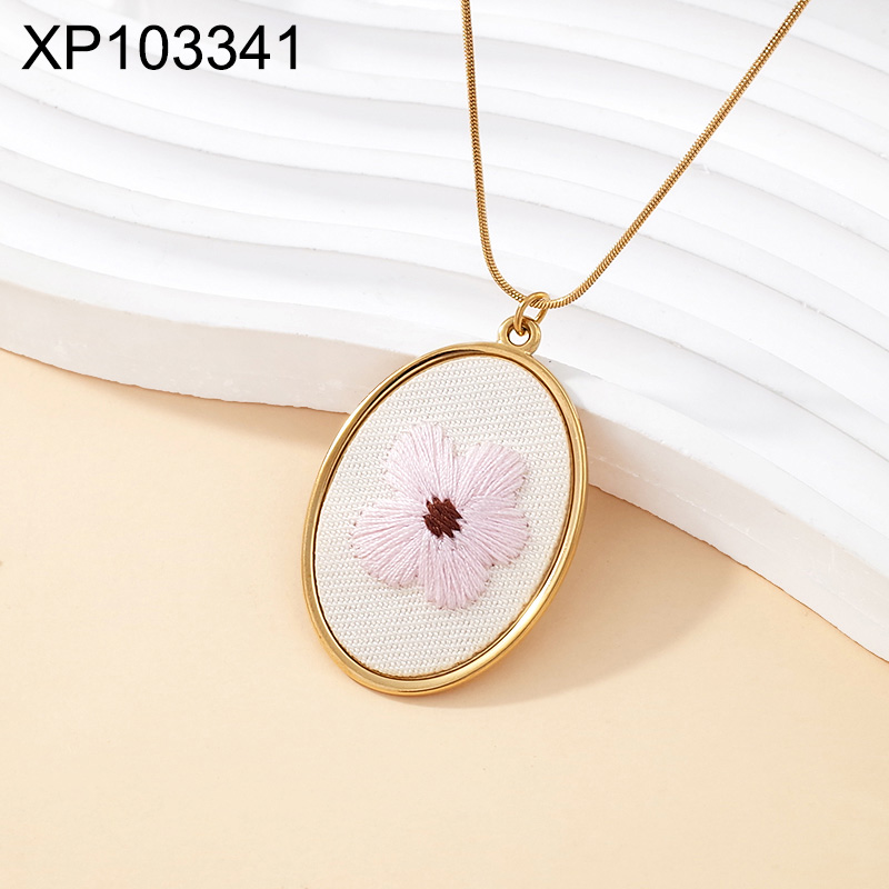 Level B Stainless Steel New Trendy Women Jewelry Oval Flower Golden Pendant