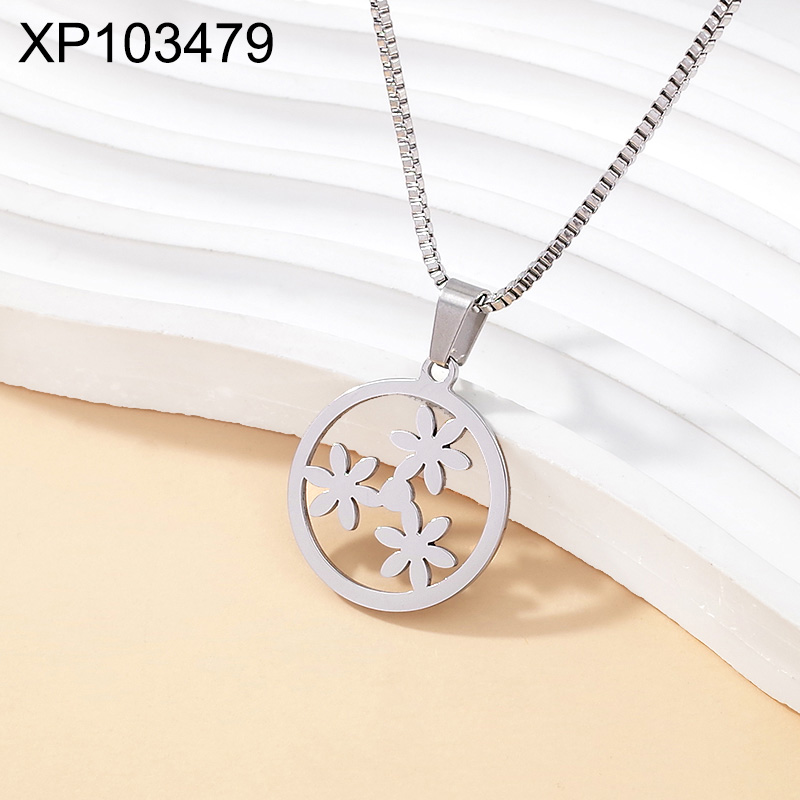 Level B Stainless Steel New Trendy Women Jewelry Round Flower Steel color Pendant