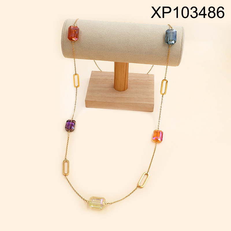 Level A Stainless Steel New Trendy Women Jewelry Rectangle Resin Golden Sweater Chain Pendant