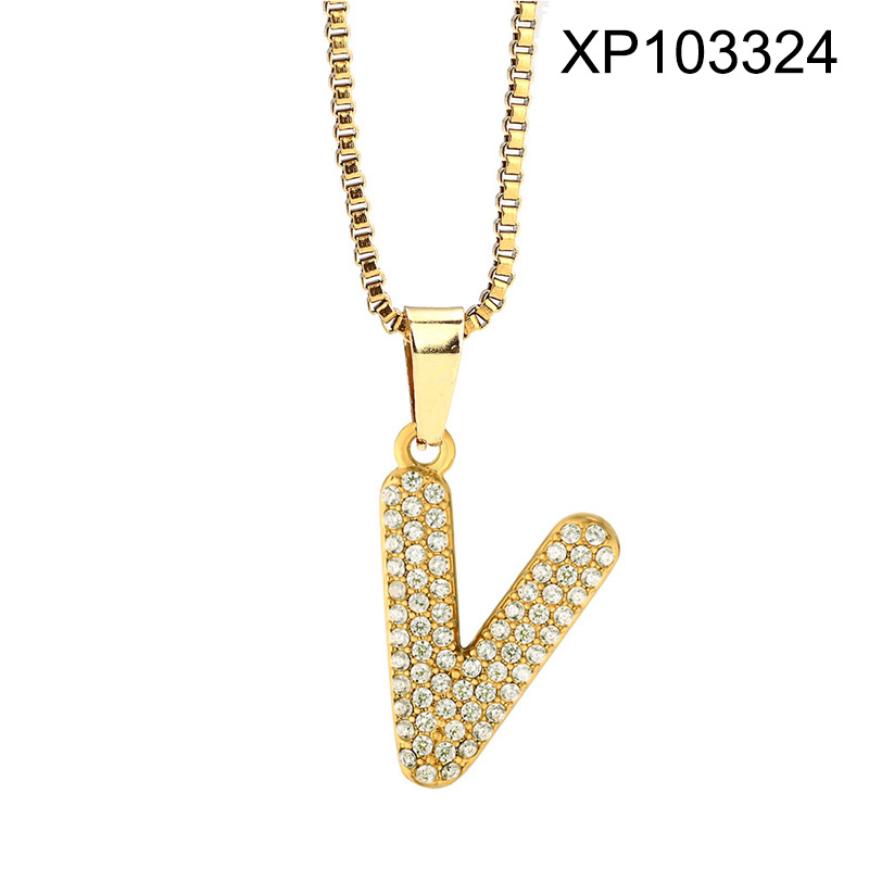 Level B Stainless Steel New Trendy Women Jewelry Letter V Golden Pendant