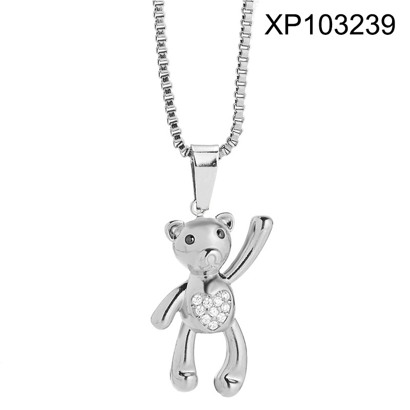 Level B Stainless Steel New Trendy Women Jewelry Animal Bear Steel color Pendant