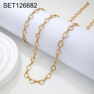 Home > Stainless Steel Sets > Necklaces & Bracelets > Level B Stainless Steel New Trendy Women Jewelry Heart Golden Chain SET