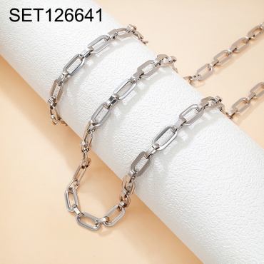 Level B Stainless Steel New Trendy Man Jewelry Steel color Chain SET