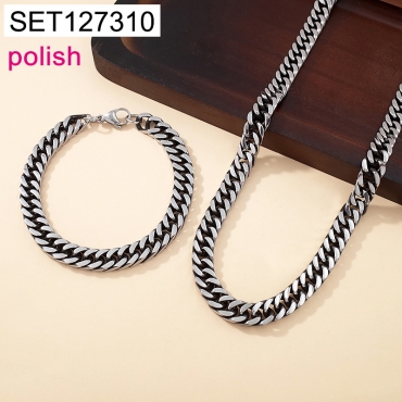 Home > Stainless Steel Sets > Necklaces & Bracelets > Level B Stainless Steel New Trendy Man Jewelry Steel color Vintage Polish Chain SET