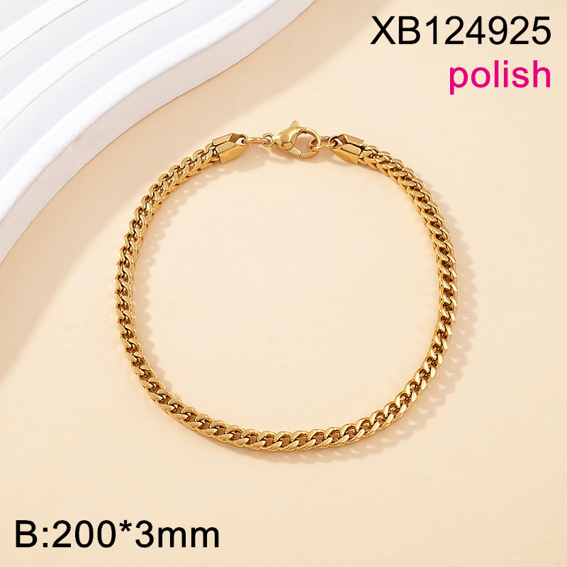 Home > Stainless Steel Bracelets > Thin Bracelets > Level B Stainless Steel New Trendy Women Jewelry Golden Polish Bracelet