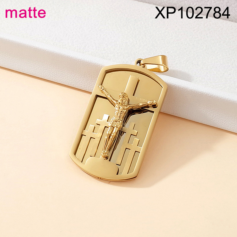 Level B Stainless Steel New Trendy Man Jewelry Jesus Cross Golden Matte Pendant