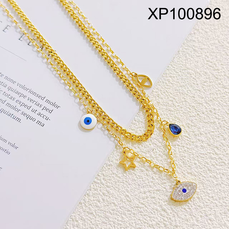 > Level B Stainless Steel New Trendy Women Jewelry Two Layers Chain Eye Golden Pendant