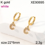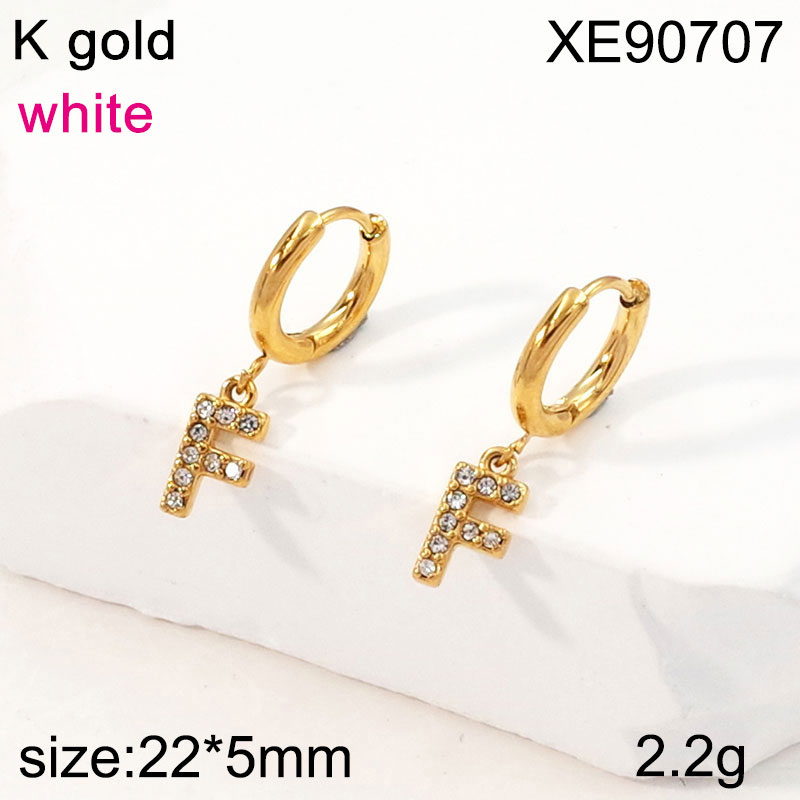 Home > Stainless Steel Earrings > Crystal Earrings > Level B Stainless Steel Jewelry New Trendy Sticky Stone Letter F Golden Hoop Earring