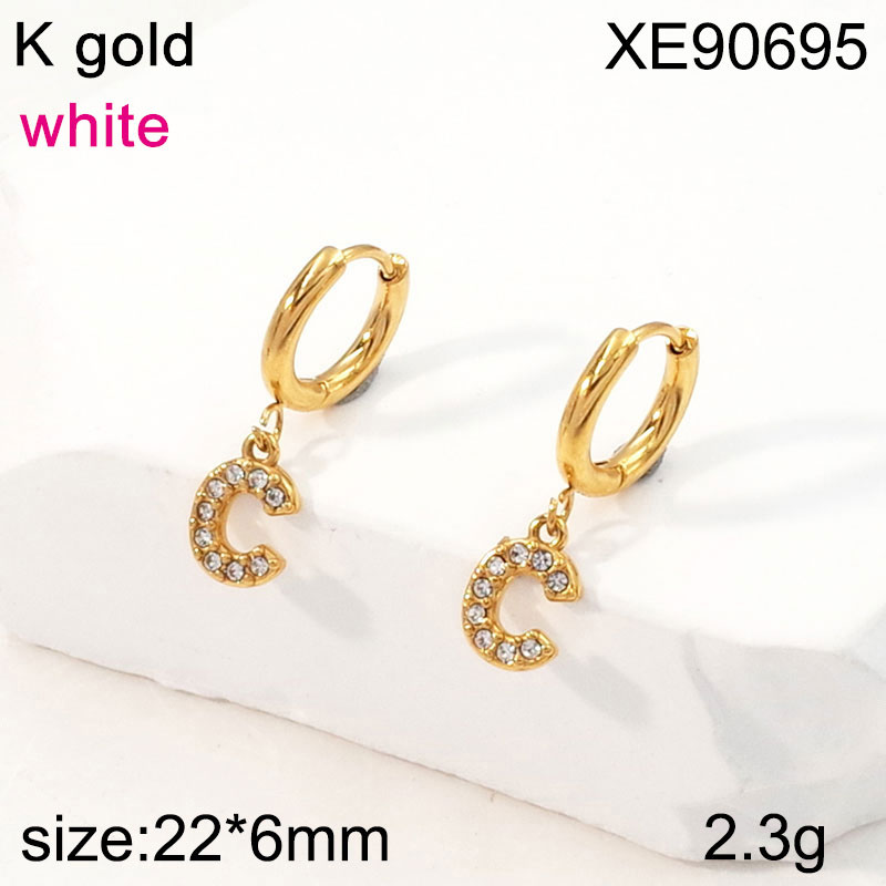 Home > Stainless Steel Earrings > Crystal Earrings > Level B Stainless Steel Jewelry New Trendy Sticky Stone Letter C Golden Hoop Earring