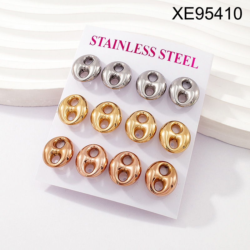 Home > Stainless Steel Earrings > Other Earrings > Level B Stainless Steel New Trendy Women Jewelry Coffee beans Oval Pig nose Three Tone Earrings