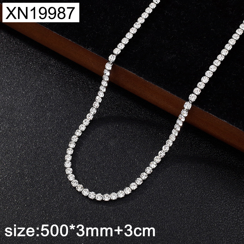 Home > Stainless Steel Necklaces > Thin Necklaces > Level B Stainless Steel New Trendy Women Jewelry Round White Rhinestone Steel color Necklace