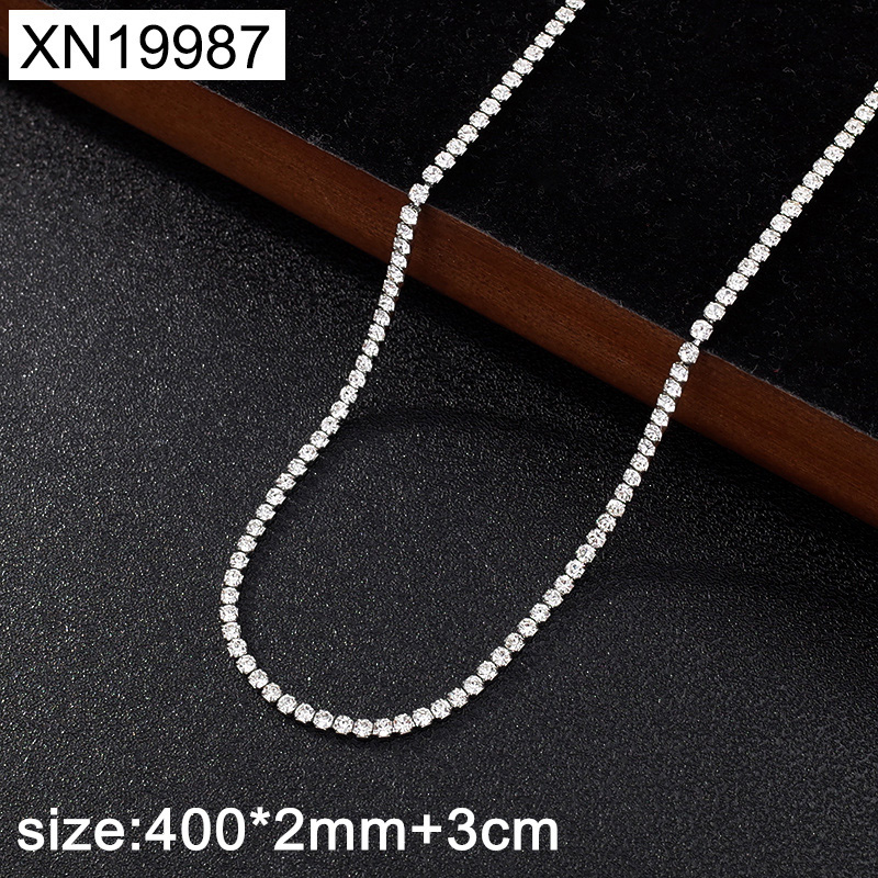 Home > Stainless Steel Necklaces > Thin Necklaces > Level B Stainless Steel New Trendy Women Jewelry Round White Rhinestone Steel color Necklace