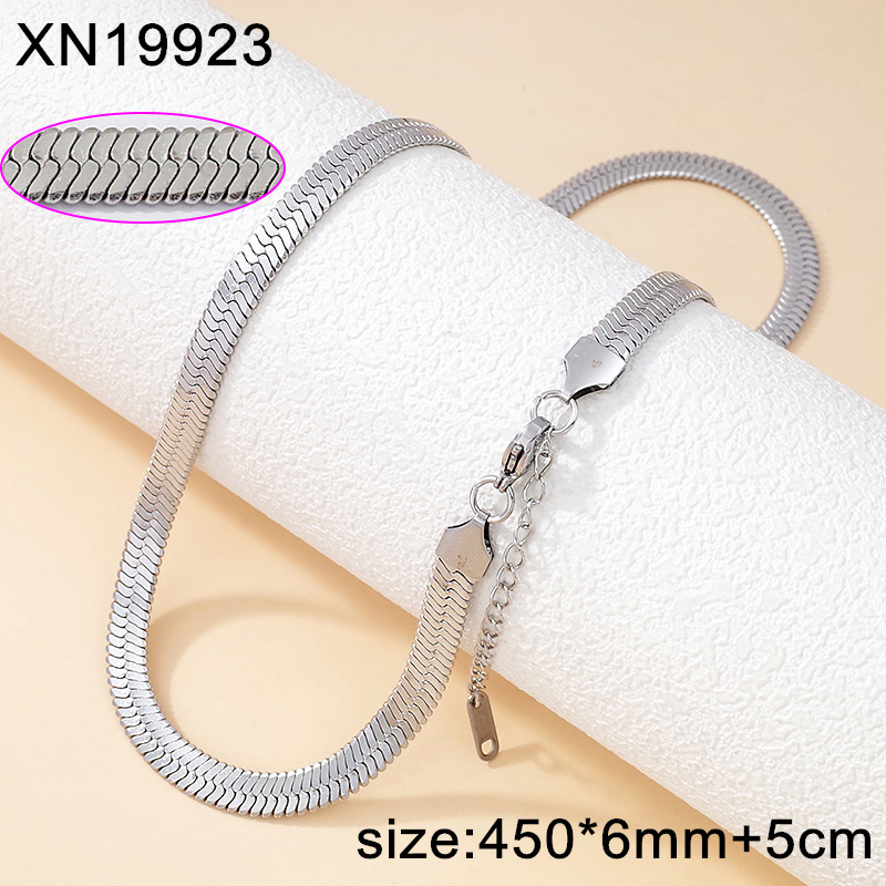 Level B Stainless Steel New Trendy Women Jewelry Steel color Flat Snake Bone Chain Necklace
