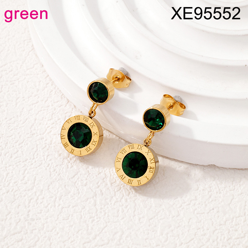 Home > Stainless Steel Earrings > Semi-precious Stones Jewelry Earrings > Level B Stainless Steel New Trendy Women Jewelry Roman Numeral Golden Earrings