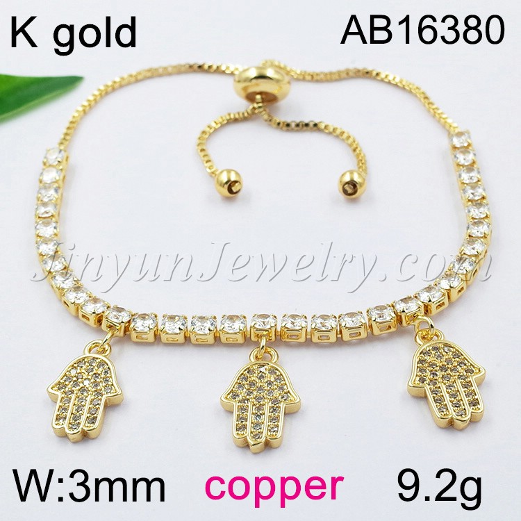 Fashion Jewelry Diamond Tennis Chain Adjustable Hands/Hamsa Charms Golden Bracelet Material: copper (cobre)