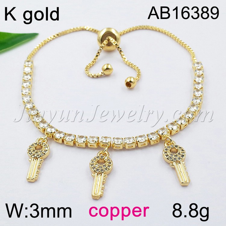 Home > Fashion Jewelry Diamond Tennis Chain Adjustable Key Golden Bracelet Material: copper (cobre)
