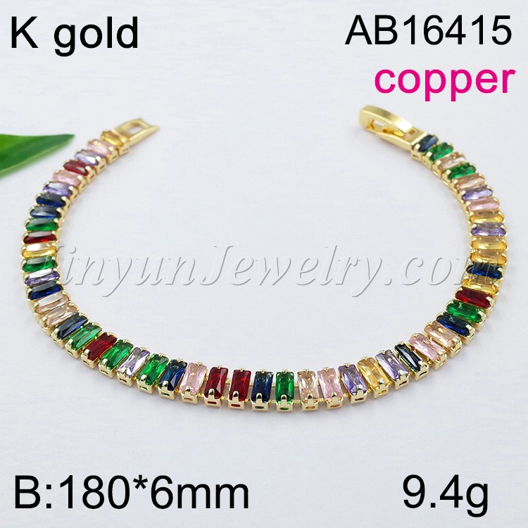 Fashion Jewelry Diamond Tennis Chain Golden Bracelet Material: copper (cobre)