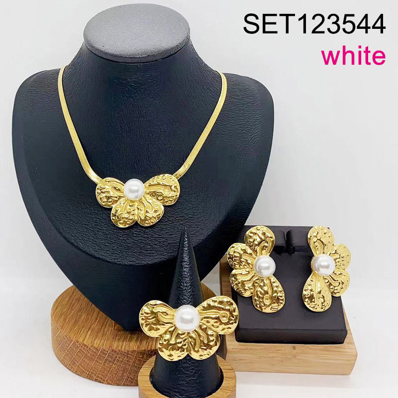Level B Stainless Steel New Trendy Women Jewelry Pearl Style/White Shell beads Animal Butterfly Golden 3pcs SET
