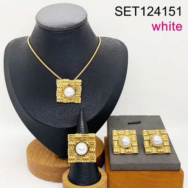 Level B Stainless Steel New Trendy Women Jewelry Pearl Style/White Plastic Beads Square Golden 3pcs SET