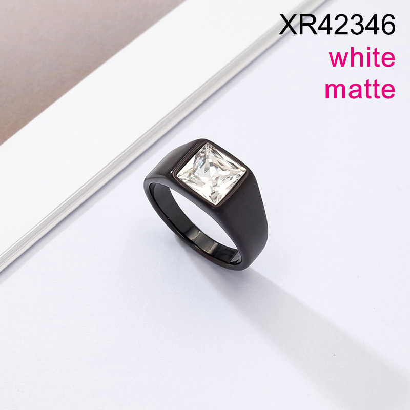 Level B Stainless Steel New Trendy Man Jewelry Square White Glass Black Matte Rings