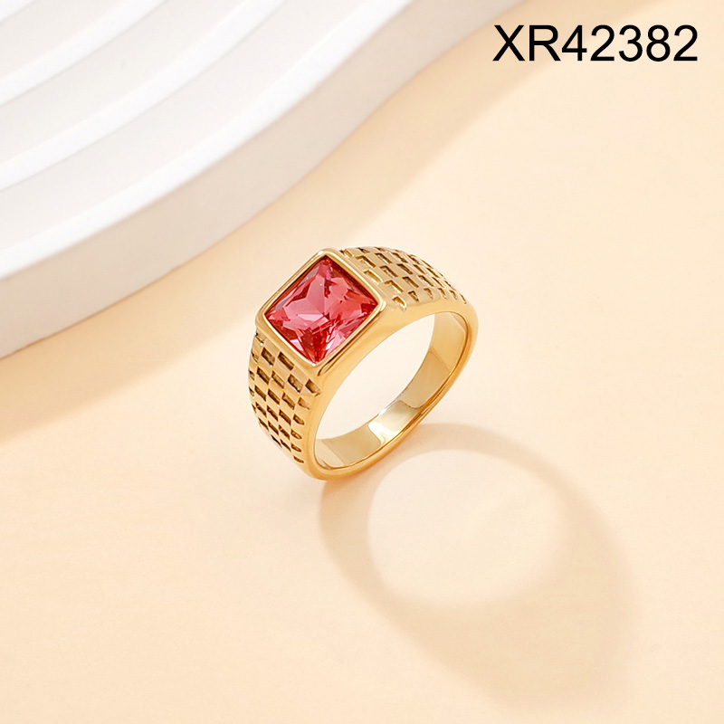Level B Stainless Steel New Trendy Man Jewelry Square Glass Golden Rings