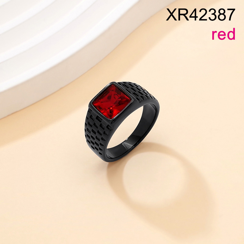 Level B Stainless Steel New Trendy Man Jewelry Square Red Glass Black Rings