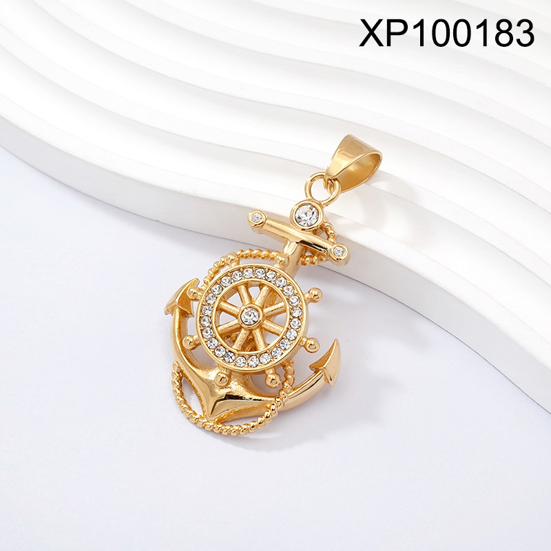 Level B Stainless Steel New Trendy Man Jewelry Anchor Boat Rudder Golden Pendant