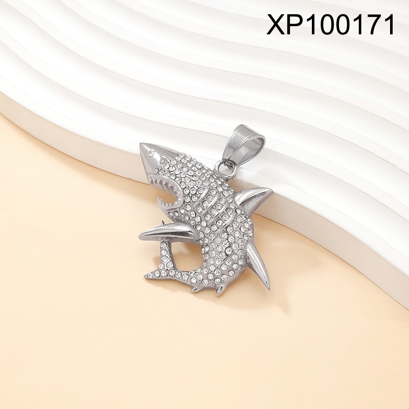 Home > Level B Stainless Steel New Trendy Man Jewelry Full Diamond Animal Shark Steel color Casting Hiphop Pendant