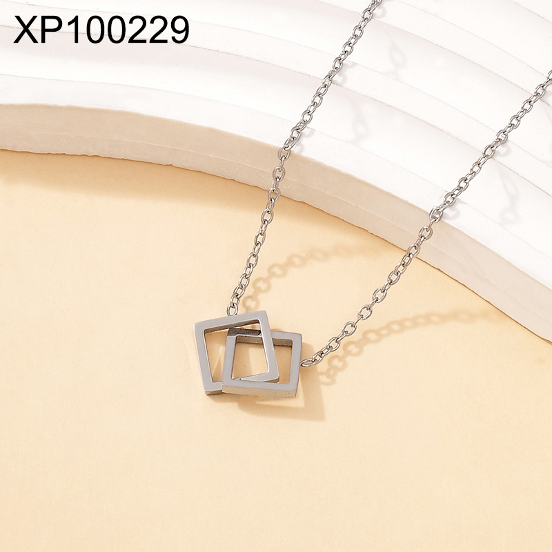Level B Stainless Steel New Trendy Women Jewelry Square Steel color Pendant