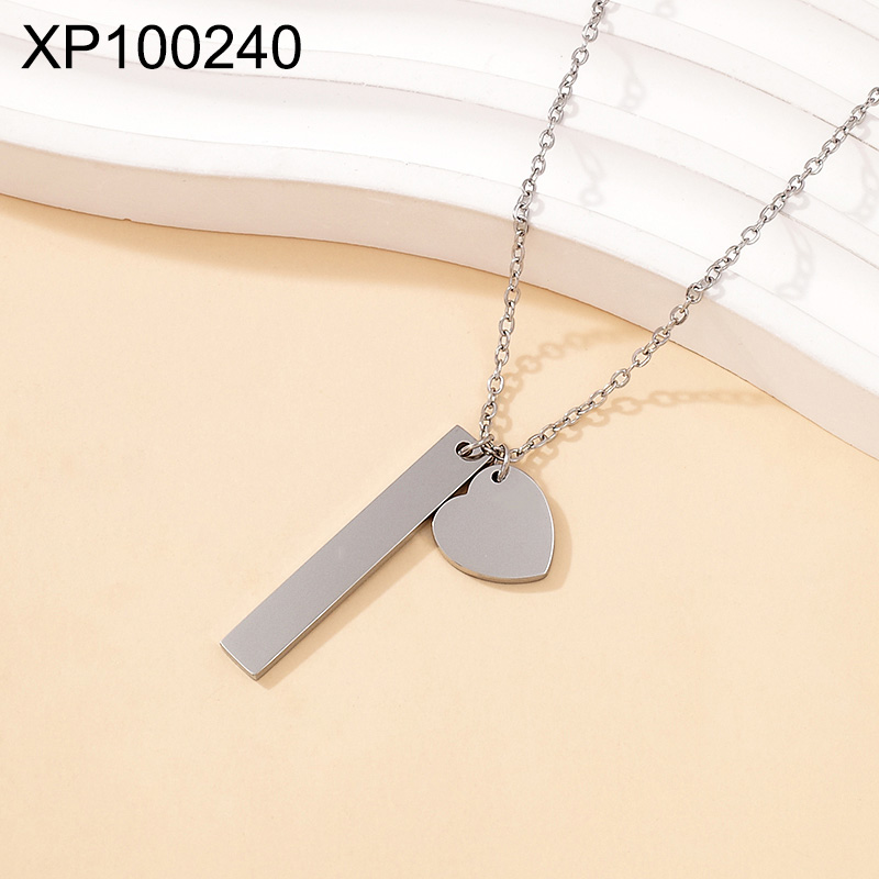 Level B Stainless Steel New Trendy Women Jewelry Rectangle Heart Steel color Pendant