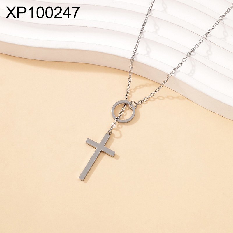 Level B Stainless Steel New Trendy Women Jewelry Round Cross Steel color Pendant