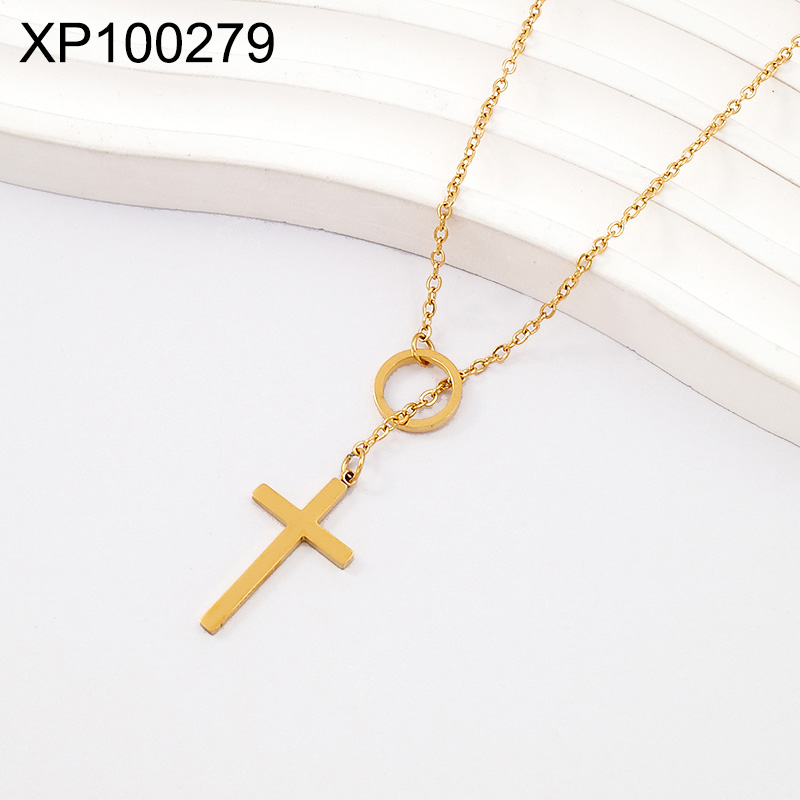 Home > Level B Stainless Steel New Trendy Women Jewelry Round Cross Golden Pendant