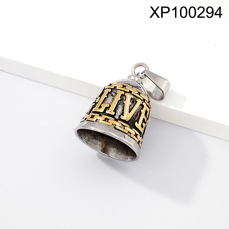 Level B Stainless Steel New Trendy Man Jewelry Punk Rock Vintage Small bell LIVE Two Tone Pendant