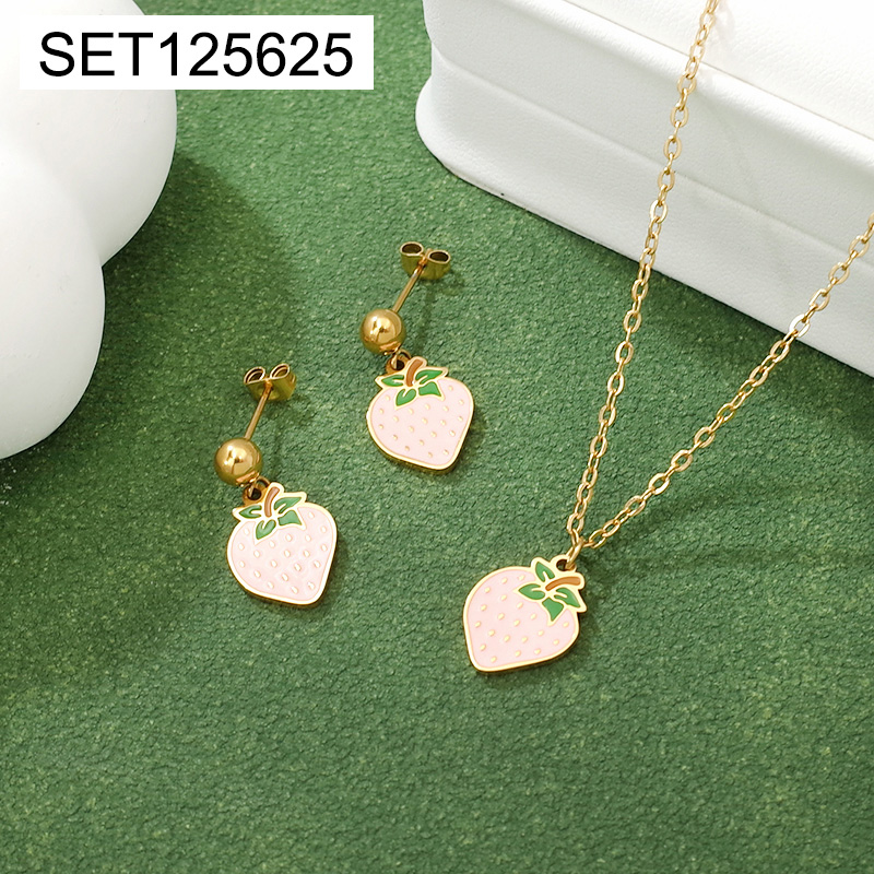 Level B Stainless Steel New Trendy Women Jewelry Drip Oil/Enamel Summer fruit style Strawberry Golden SET