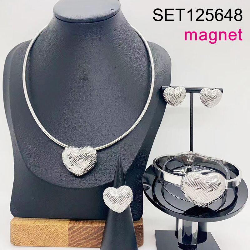 Level B Stainless Steel New Trendy Women Jewelry Heart Steel color Magnet buckle 4pcs SET