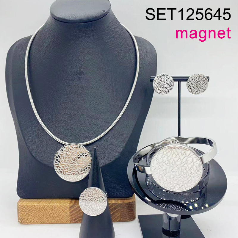 Level B Stainless Steel New Trendy Women Jewelry Round Steel color Magnet buckle 4pcs SET