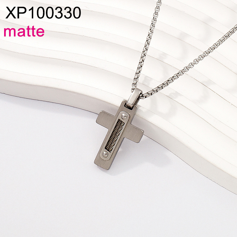 Level B Stainless Steel New Trendy Man Jewelry Cross Steel color Matte Pendant
