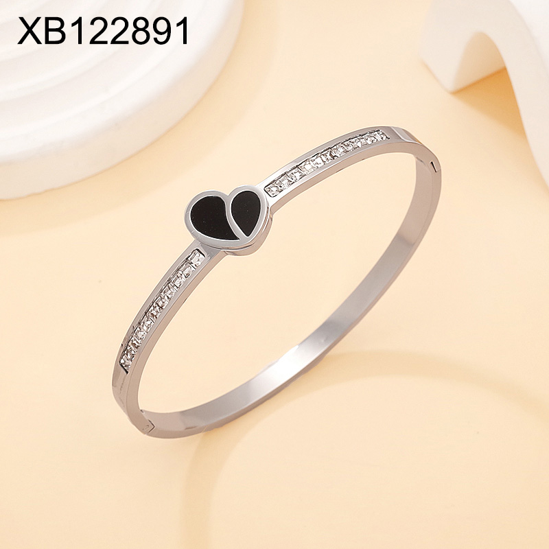 Level B Stainless Steel New Trendy Women Jewelry Heart Steel color Bangle