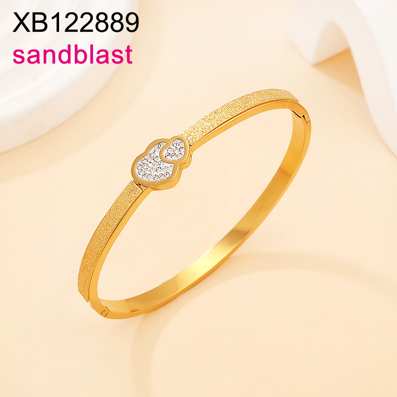 Home > Level B Stainless Steel New Trendy Women Jewelry Heart Golden Sandblast Bangle