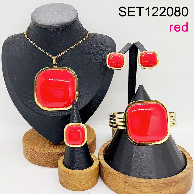 Level B Stainless Steel Jewelry New Trend Red Geometry Golden 4pcs SET