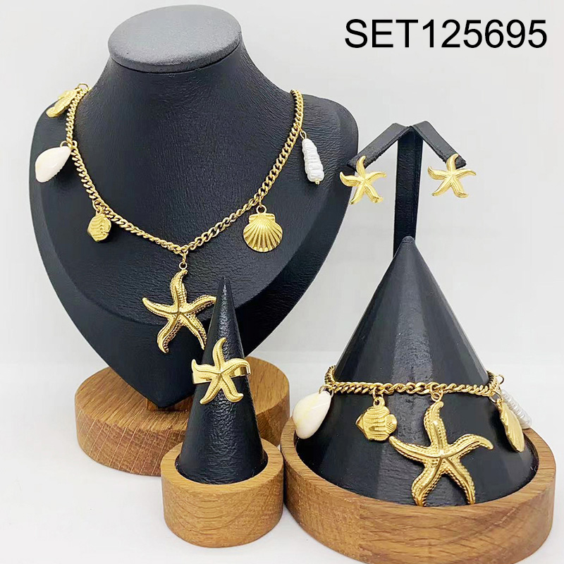 Level B Stainless Steel New Trendy Women Jewelry Summer beach Animal Shell Starfish Fish Golden 4pcs SET