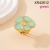 Level B Stainless Steel New Trendy Women Jewelry Drip Oil/Enamel Green Flower Golden Open Rings;Ring size can be adjusted freely