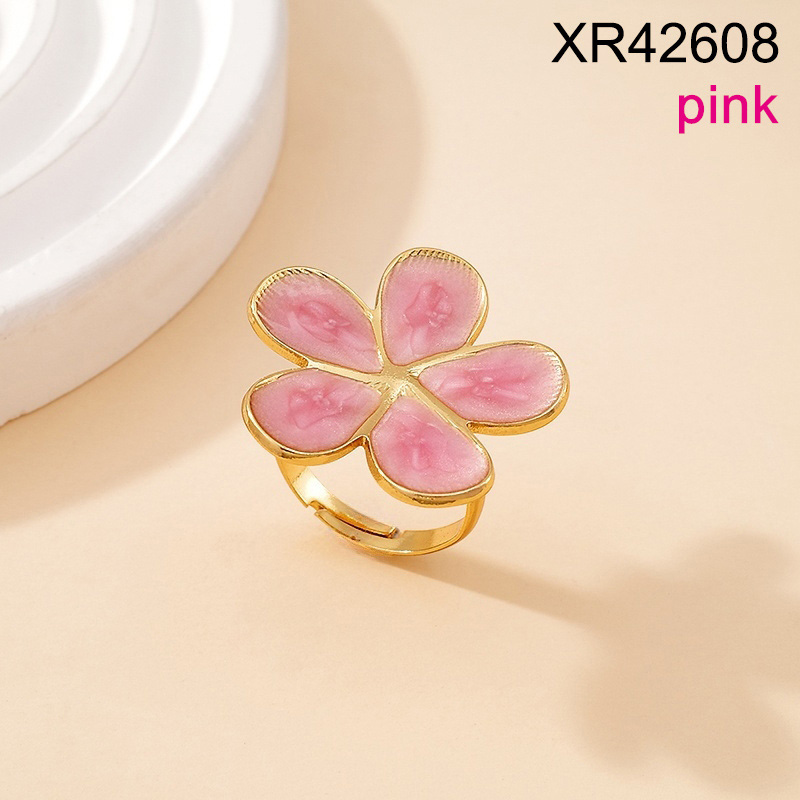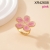 Level B Stainless Steel New Trendy Women Jewelry Drip Oil/Enamel Pink Flower Golden Open Rings;Ring size can be adjusted freely