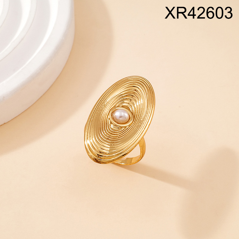 Level B Stainless Steel New Trendy Women Jewelry Pearl Style/Plastic Beads Oval Golden Open Rings;Ring size can be adjusted freely