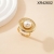 Level B Stainless Steel New Trendy Women Jewelry Pearl Style/Plastic Beads Round Golden Open Rings;Ring size can be adjusted freely